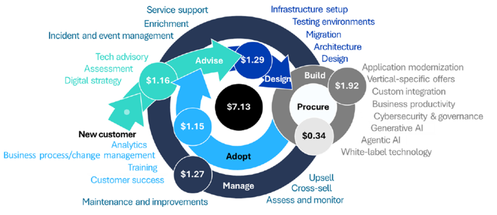 Figure 2: Partners Ecosystem flywheel – Partners with a breadth of services achieve $7.13 multiplier.
