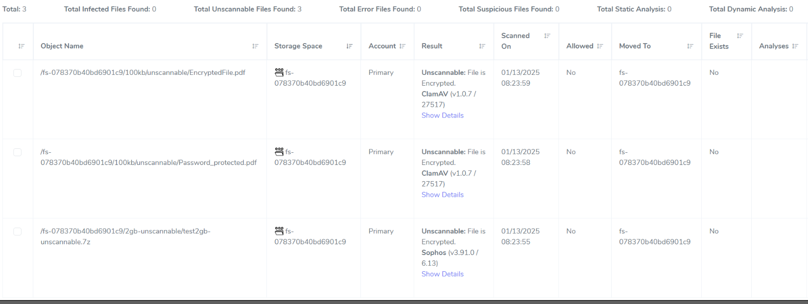 The CSS configurable dashboards make it straightforward to view patterns, detailed file status, and compliance metrics. You can get scan results by navigating to Findings in the main menu (Figure 3). Scans that result in Suspicious, Infected, Error, or Unscannable are posted here by default. Real-time malware detection powered by Cloud Storage Security’s scanning engines provides prompt threat mitigation, with an automated approach that removes files before they can be accessed.