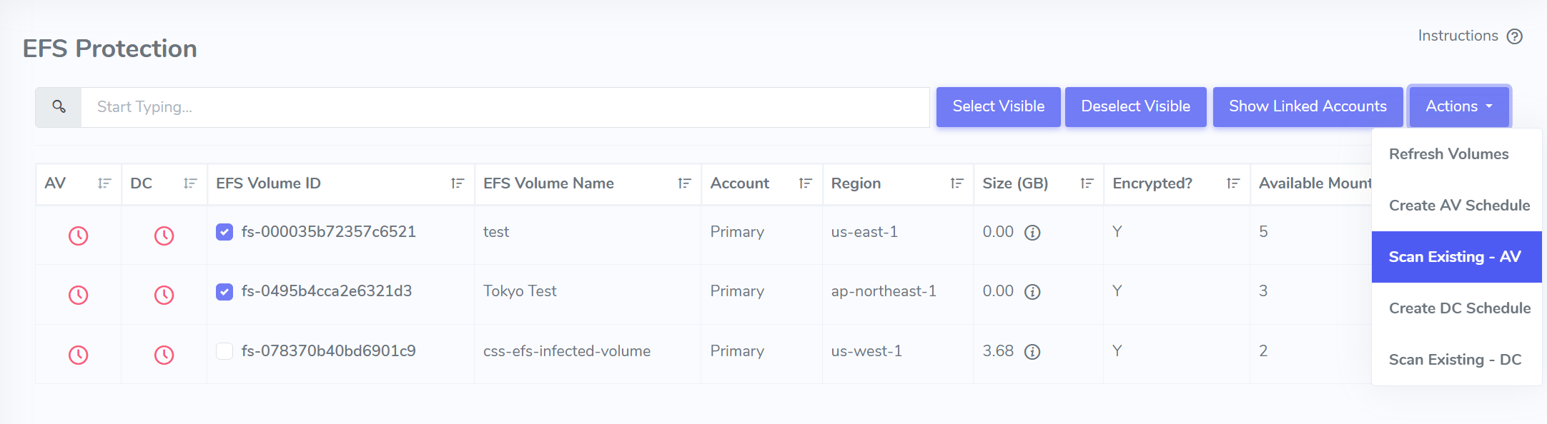 3b. Choose the check box next to the file systems you want to protect and choose Actions.
