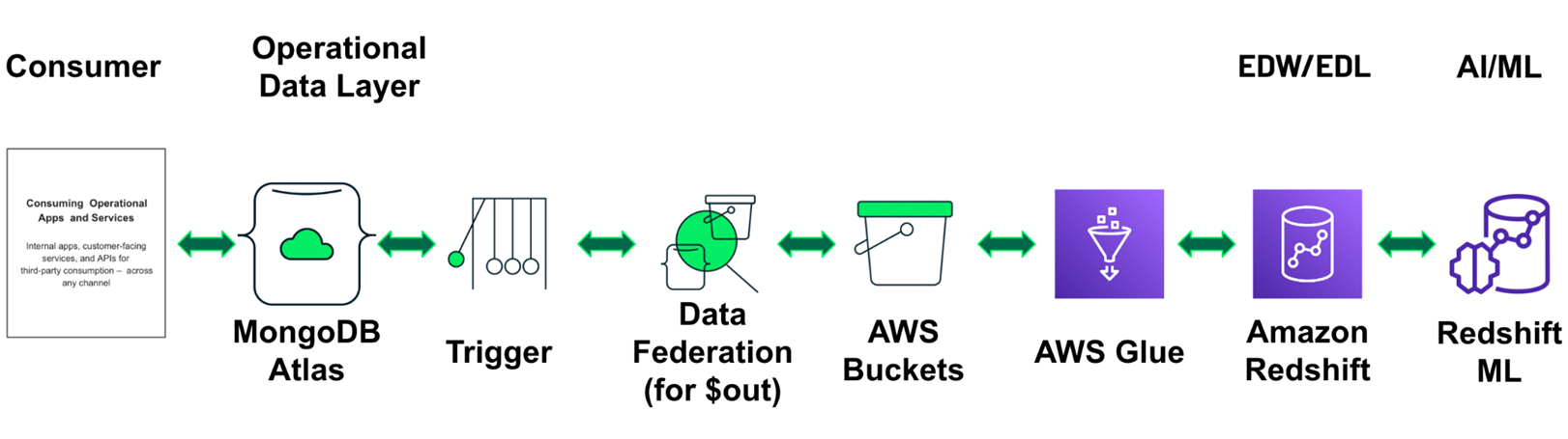 With the synergy created by using MongoDB Atlas for its operational efficiency and Amazon Redshift for its data warehousing excellence, we can develop operational analytics for any type of business needs.