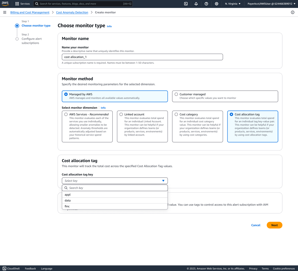 Choose your primary dimension wisely: Most organizations have a dominant way of establishing cost ownership. Whether you track by accounts or cost allocation tags, start with your primary method. You can always add customer managed monitors for specific tracking needs.