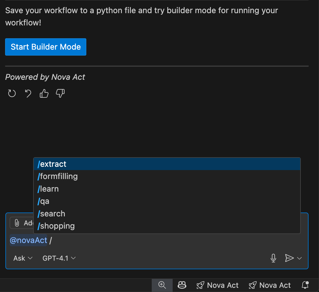 Here’s a quick look at the Nova Act extension in Visual Studio Code: