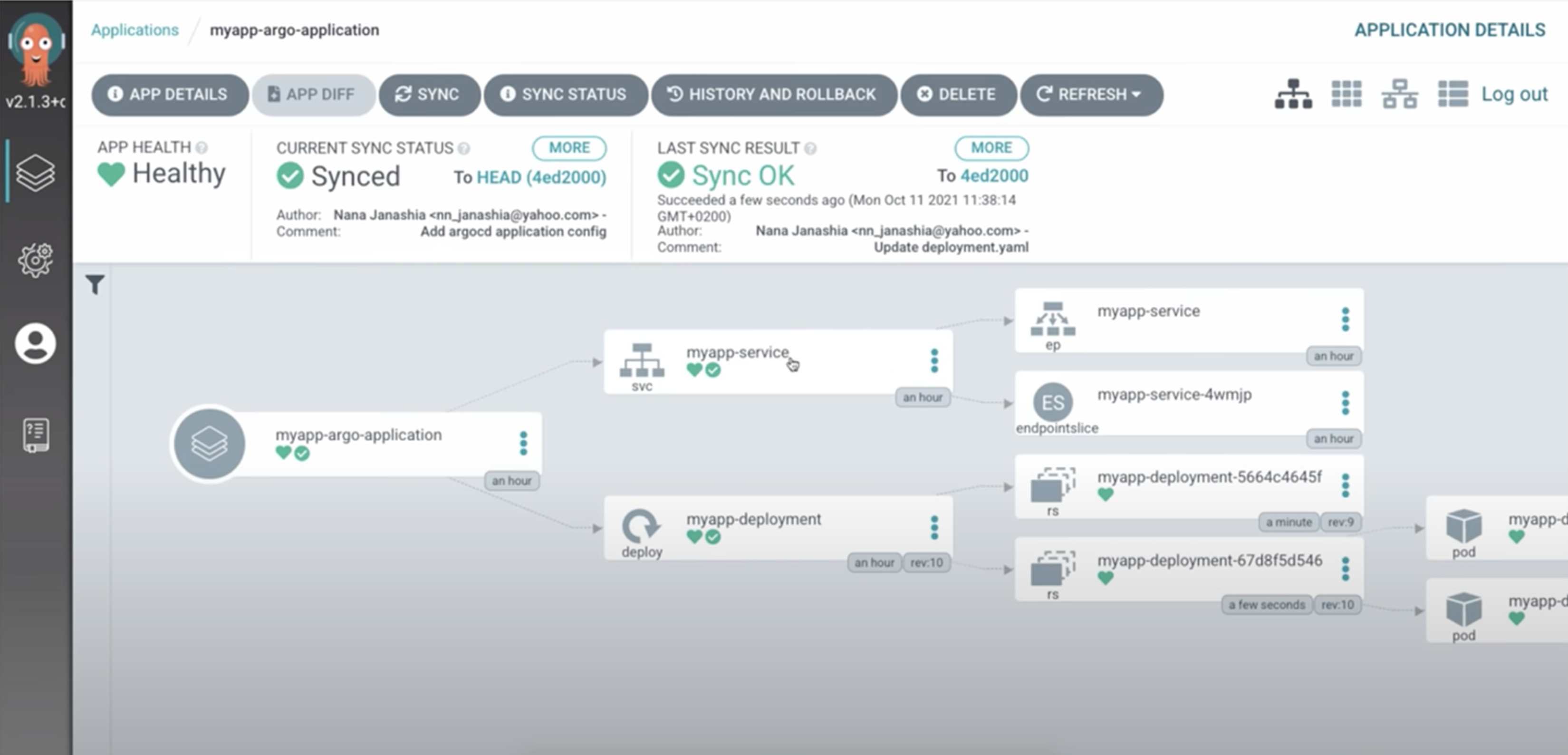 Choose Go to Argo UI to visualize and monitor deployment status and application health.