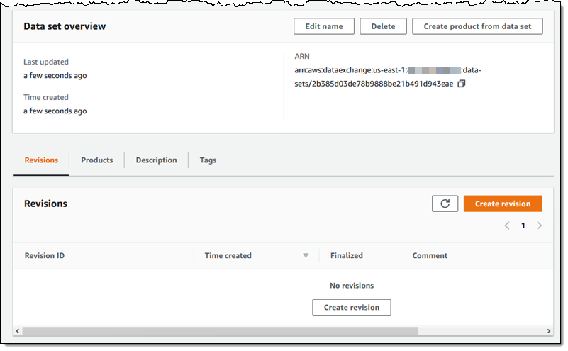 Then I can download the set to my S3 bucket, and take a look. I click into the data set, and find the Revisions: