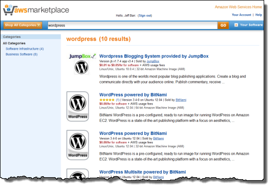 After you enter your search terms and click the Go button, the Marketplace results page will open in a new tab. Here’s what happens when I search for wordpress: