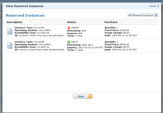 The AWS Management Console now has support for our new Reserved Instances feature, previously announced in this very blog. You can now purchase new Reserved Instances and see your existing holdings with point-and-click ease.