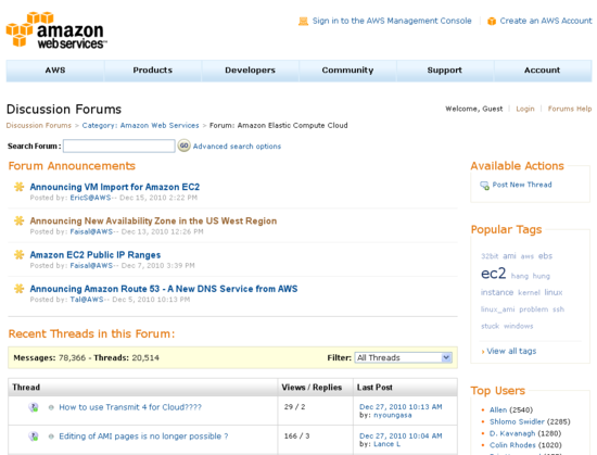 The AWS Discussion forum now includes a tag cloud and the editor now supports the use of markdown (simple text to HTML markup). Performance has been markedly improved as well.
