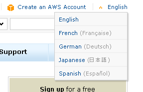 Most of the technical and marketing pages (including the AWS case studies) on the AWS Portal have been translated into French, German, Japanese, and Spanish. You can use the drop-down menu at the top right of each portal page to switch languages: