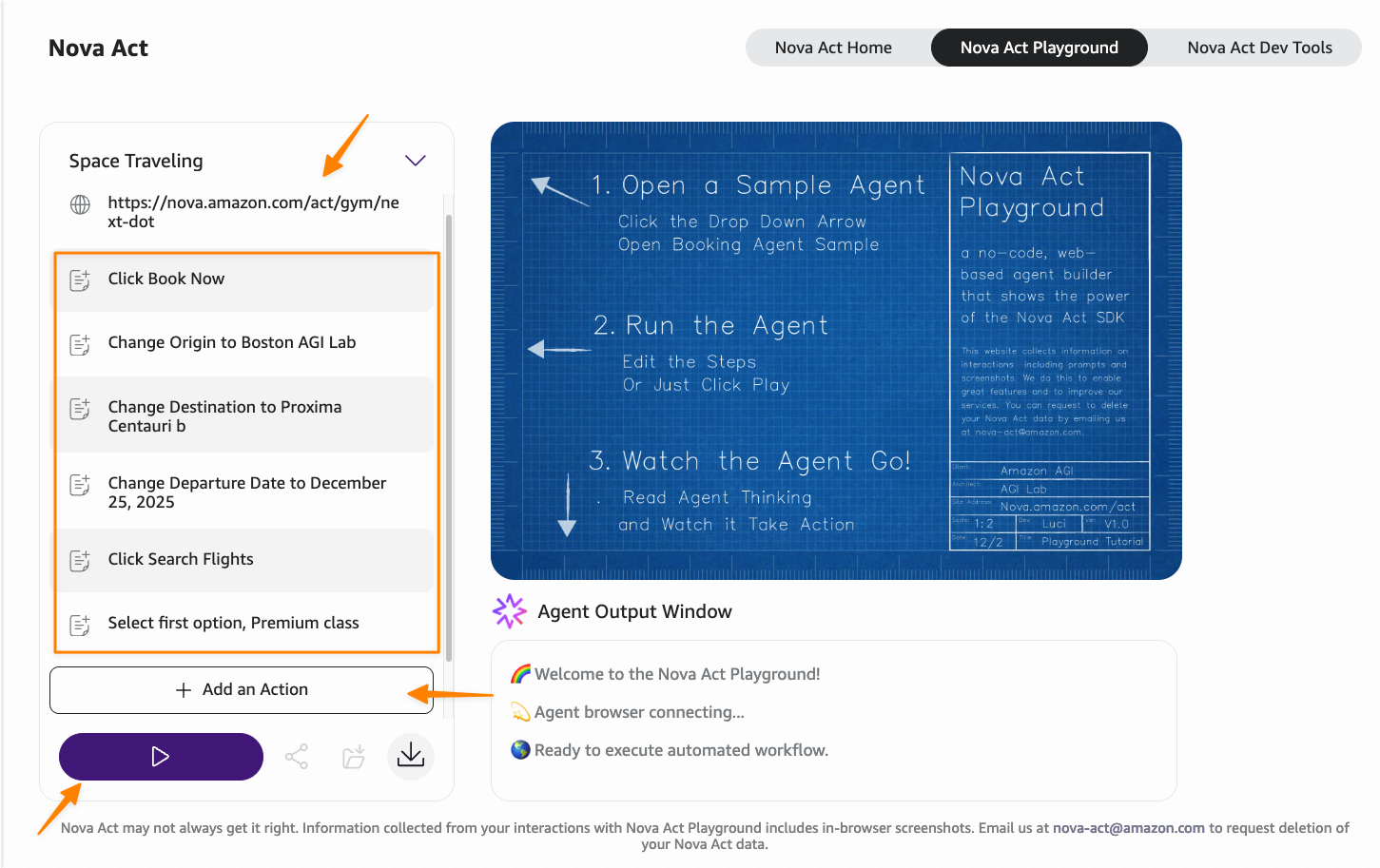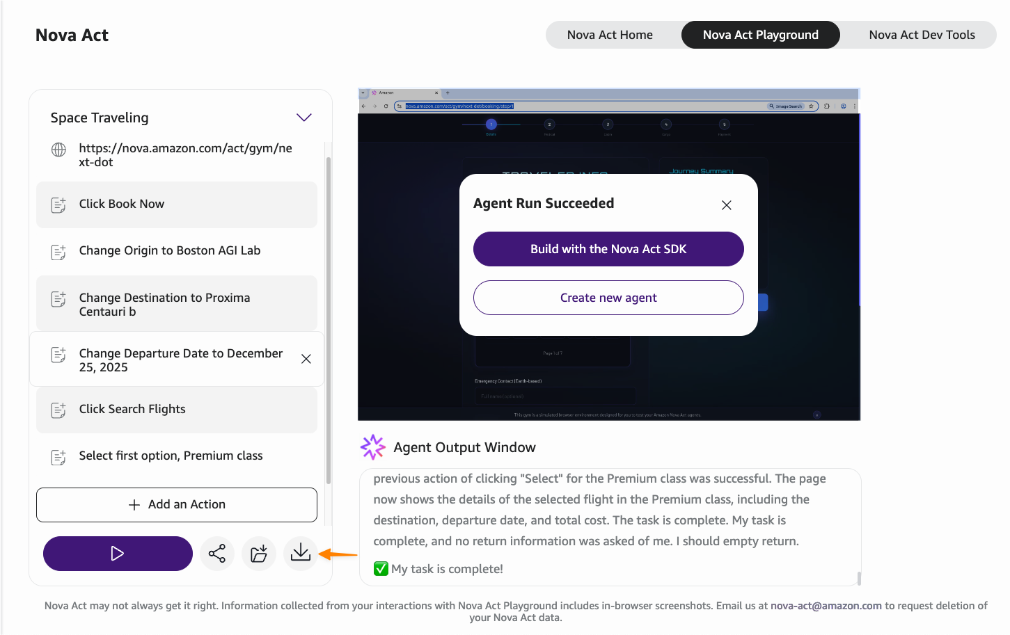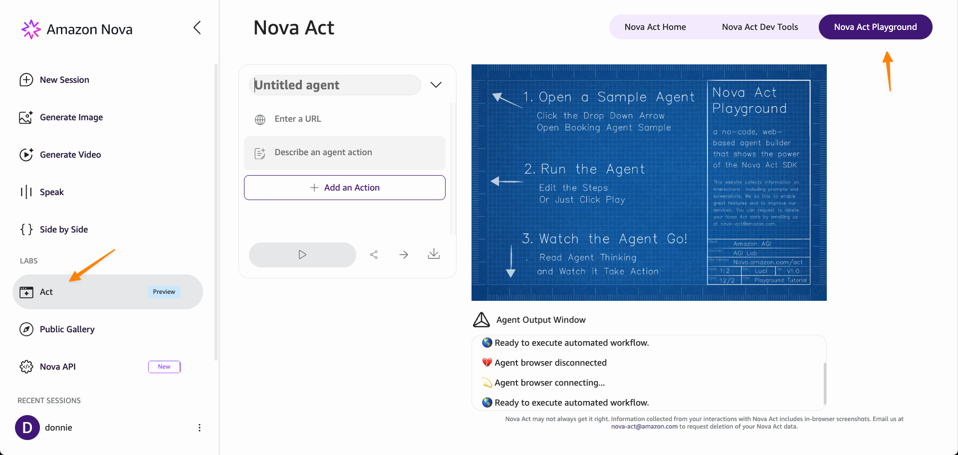 Here’s a quick look at the Nova Act console.