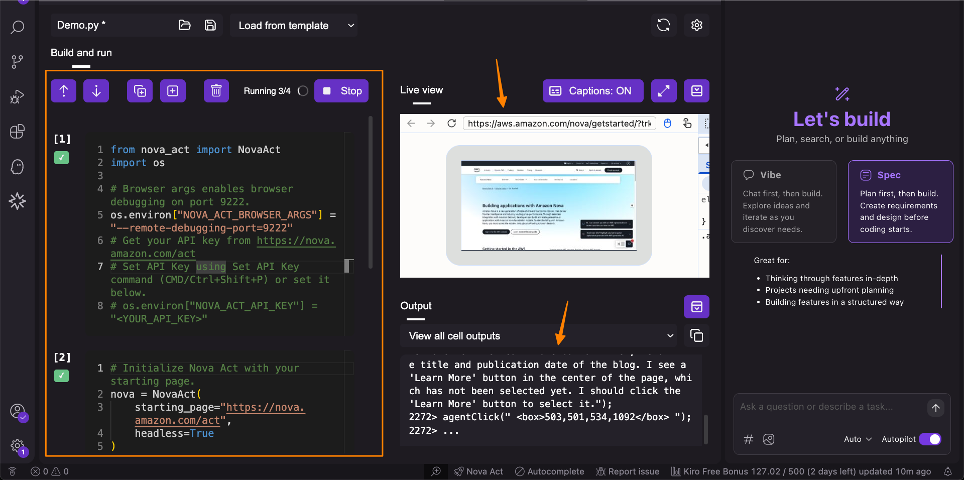 - Pricing – Visit the Amazon Nova Act pricing page for details.