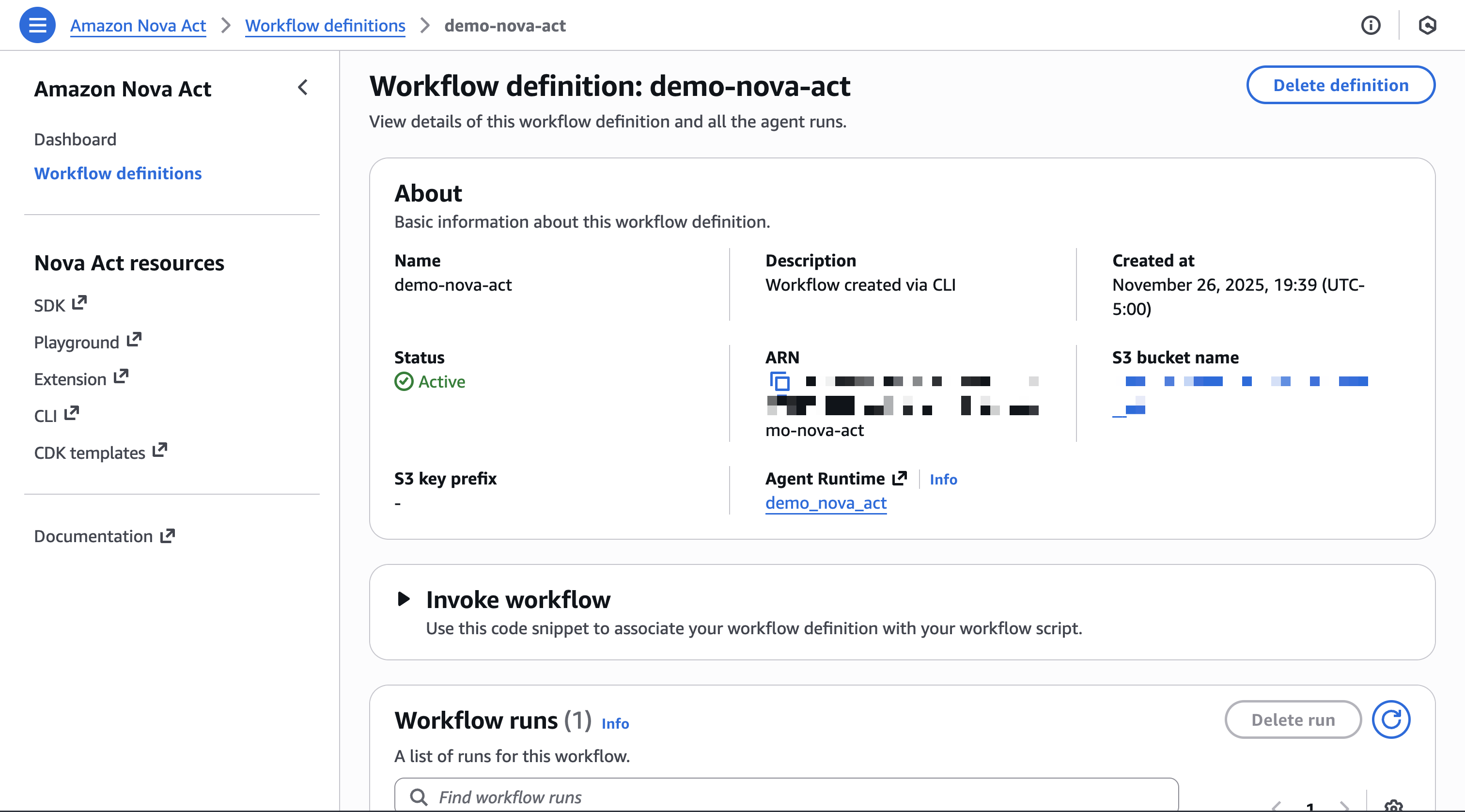 To learn how to use the Nova Act extension in your IDE, visit Accelerate AI agent development with the Nova Act IDE extension in the AWS News Blog. The Nova Act extension includes templates to help you get started quickly with common workflow patterns.