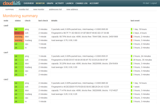 Alex Polvi gave me a demo of the newest release of Cloudkick last week. Cloudkick lets you manage and monitor server instances running on Amazon EC2 and other cloud providers using a single, unified interface.