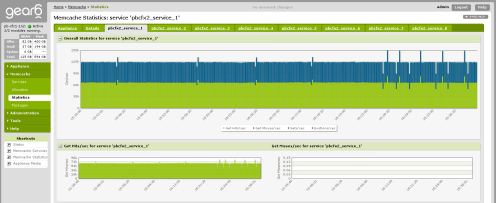 The Gear6 implementation of Memcached leverages the instance’s local (ephemeral) storage, providing a 100x cache capacity increase per instance (when compared to a purely RAM-based cache), while remaining 100% compatible with the existing memcached API. There’s a web UI (shown at right) for monitoring, with access to 24 hours of historical usage and performance data.