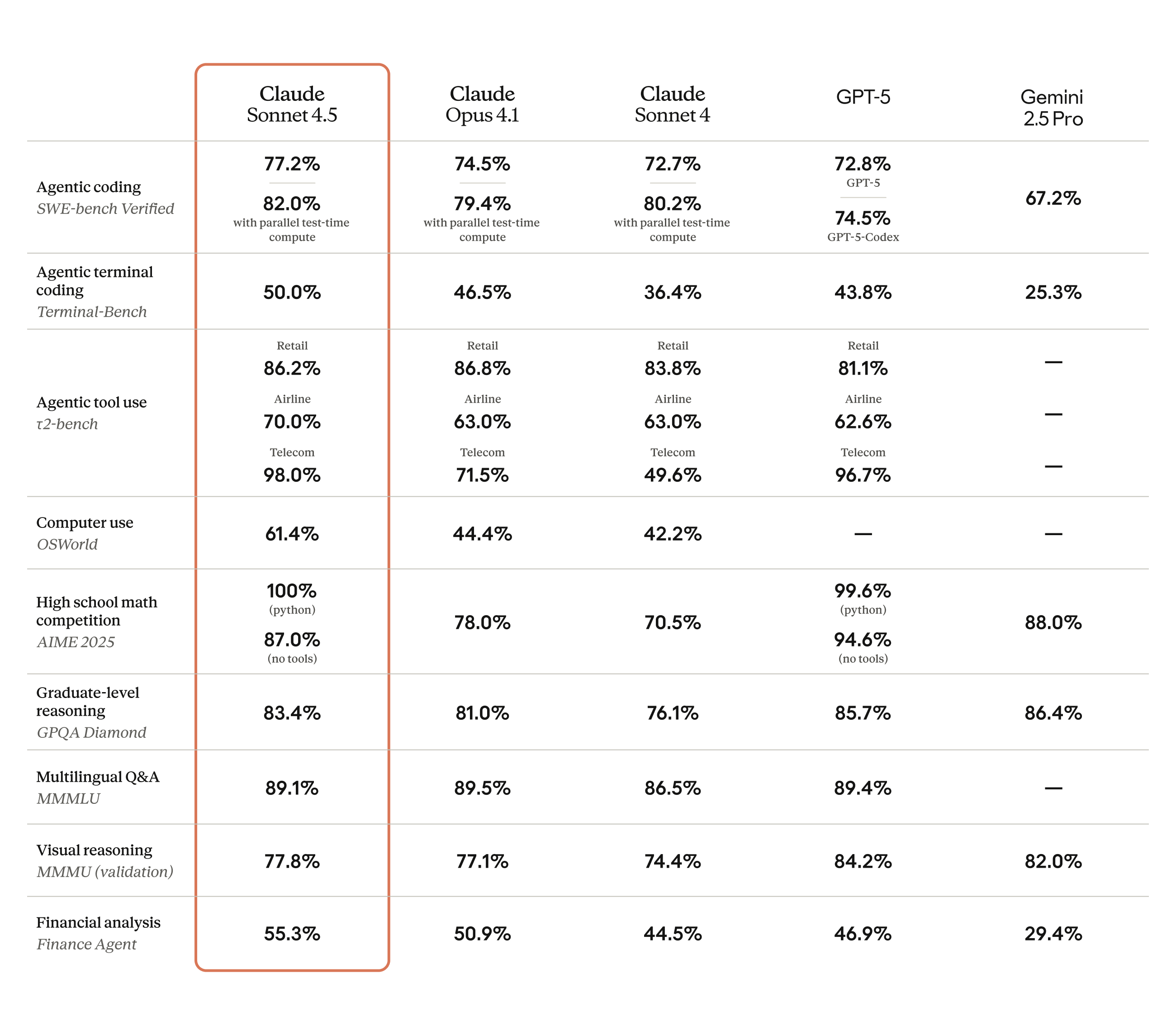 - Finance – Sonnet 4.5 handles everything from entry-level financial analysis to advanced predictive analysis, helping transform manual audit preparation into intelligent risk management.