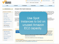 Spot Instance Bidding Strategies – This video shows how customers choose bid strategies that have resulted in savings of 50-66% from the On-Demand pricing. Four strategies are covered: bidding near the hourly rate for Reserved Instances, bidding based on previous trends, bidding at the On-Demand price, and bidding higher than the On-Demand price. Watch this video to learn when it is appropriate to use each of these strategies. The video also references a particle physics project run by the University of Melbourne and the University of Barcelona on Spot Instances. More information about this project is available in a recent case study.