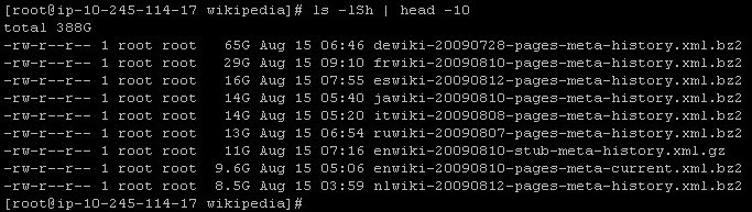 Weighing in at a whopping 500 GB (388 GB of data and 112 GB of free space to allow for some in-place decompression), the Wikipedia XML data is our newest Public Data Set.