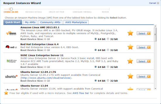 You can use the AWS Marketplace (1-Click 32-bit, 64-bit) or the AWS Management Console to launch a micro instance running SLES: