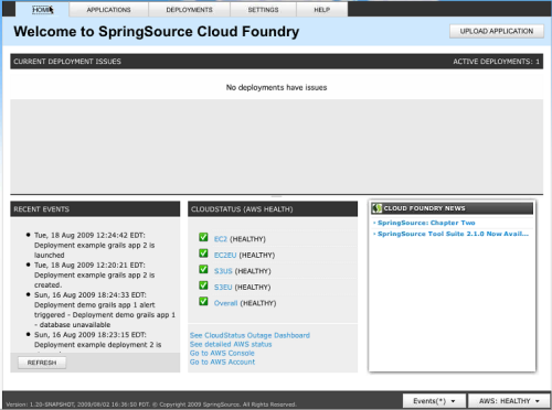 The SpringSource Cloud Foundry allows developers to build, run, and manage Java, Spring, and Grails applications on Amazon EC2.