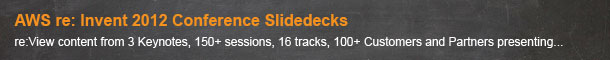 In 2012, we also published more than 300+ new Slide Decks on SlideShare. Some of the AWS re: Invent Session Decks are available below: