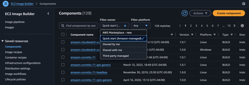 As an AWS Marketplace seller, you can save time by customizing an existing EC2 Image Builder component. You can modify an Amazon-managed Quick Start component to match your software requirements. To create a custom component from an existing template: