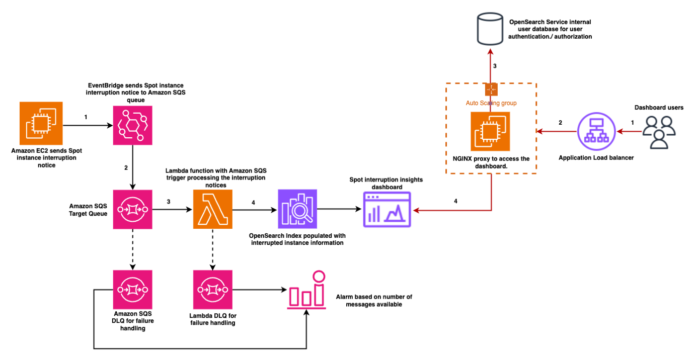 - EC2 Spot interruption notices are captured via an Amazon EventBridge rule.