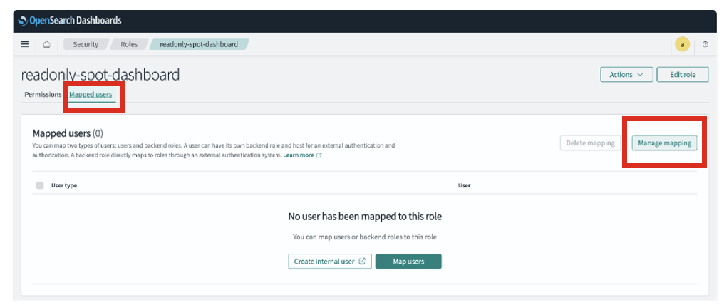 - After the role is created, on the same screen, select the ‘Mapped Users’ tab and choose ‘Manage Mapping’