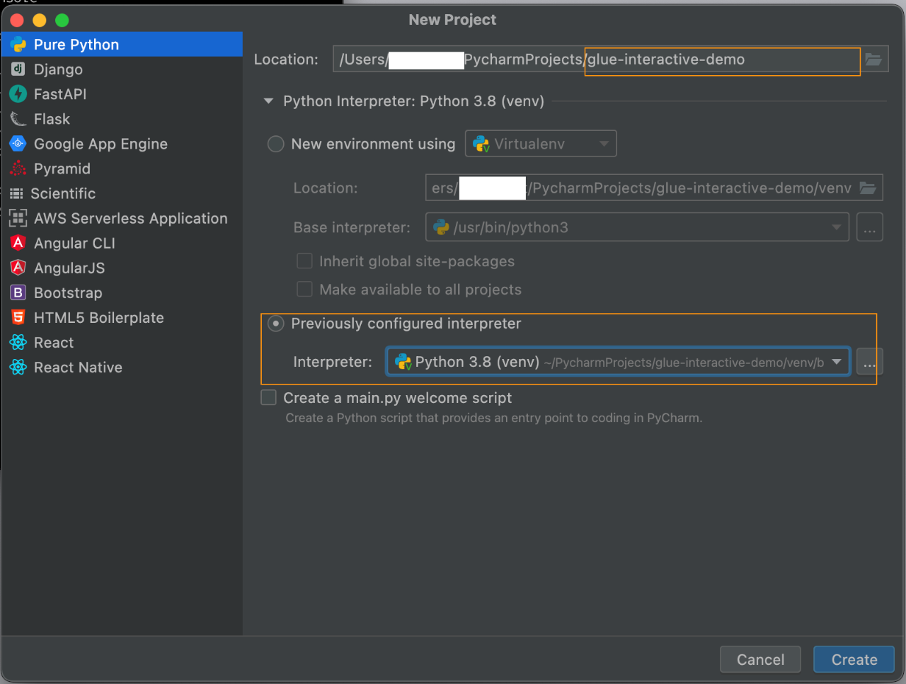 glue-interactive-demo. - Expand Python Interpreter.