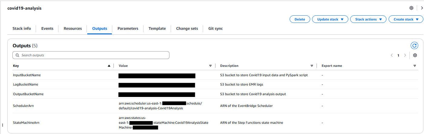 - Raw COVID-19 data in CSV format is stored in an S3 input bucket.