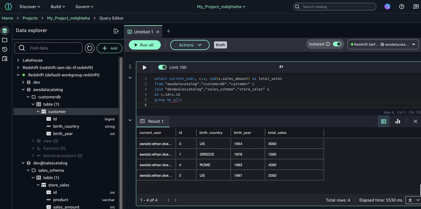 - Users are authenticated as IAM Identity Center users, ready to explore and analyze data using Amazon Redshift and Amazon Athena.