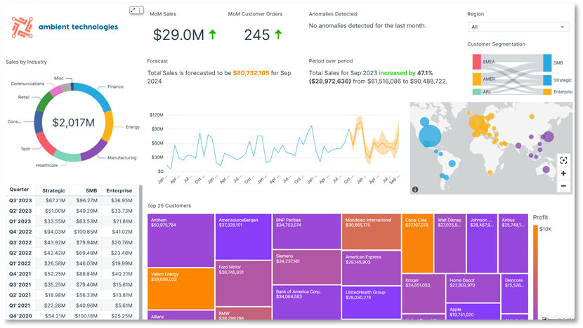 Turning complex datasets into intuitive visuals unravels hidden patterns in the data, and is crucial for C360 use cases. With this capability, you can design reports for different levels catering to varying needs: executive reports offering strategic overviews, management reports highlighting operational metrics, and detailed reports diving into the specifics. Such visual clarity helps your organization make informed decisions across all tiers, centralizing the customer’s perspective.