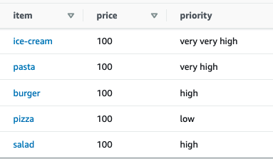 Now we update the priority for burgers to high in the DynamoDB table through the console while the orders are streaming into the pipeline.