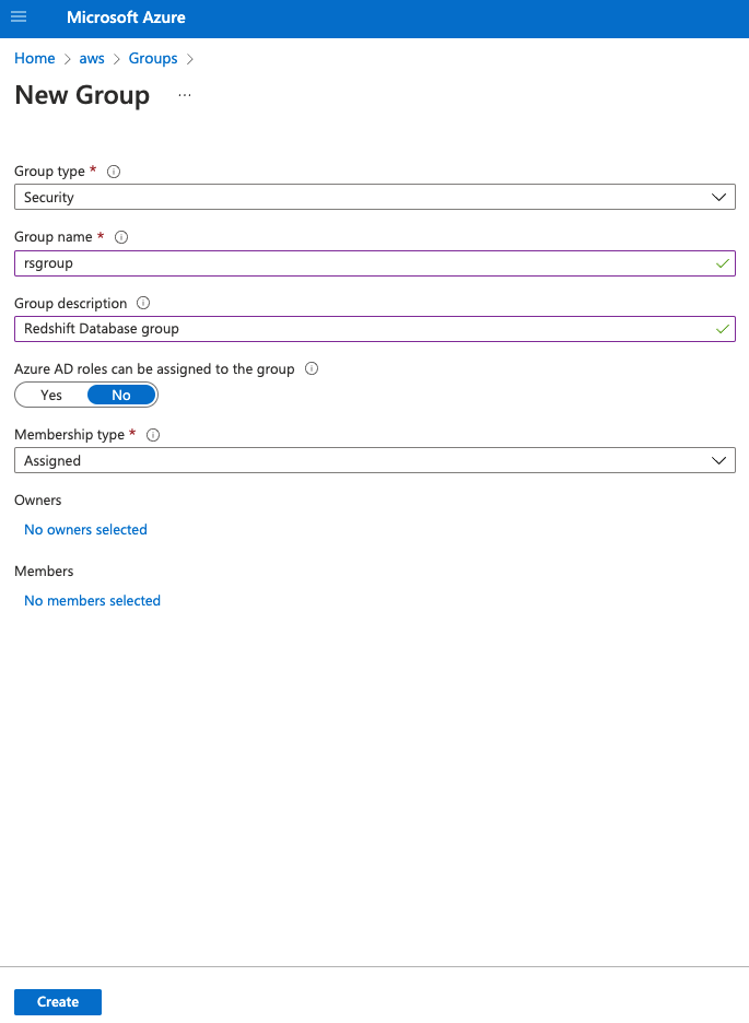 - Pre-create the Amazon Redshift roles based upon the groups which you have created on the Azure AD portal.