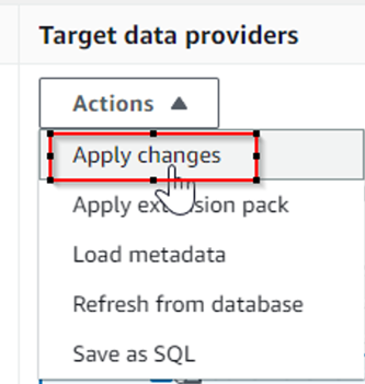 - Alternatively, you can apply the scripts directly to the database using DMS Schema Conversion. Select the specific schema in the target database, and on the Actions menu, choose Apply changes.