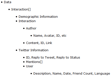 Our data represents a complex interaction graph between multiple users of Twitter, for both re-tweets and replies, as shown here:
