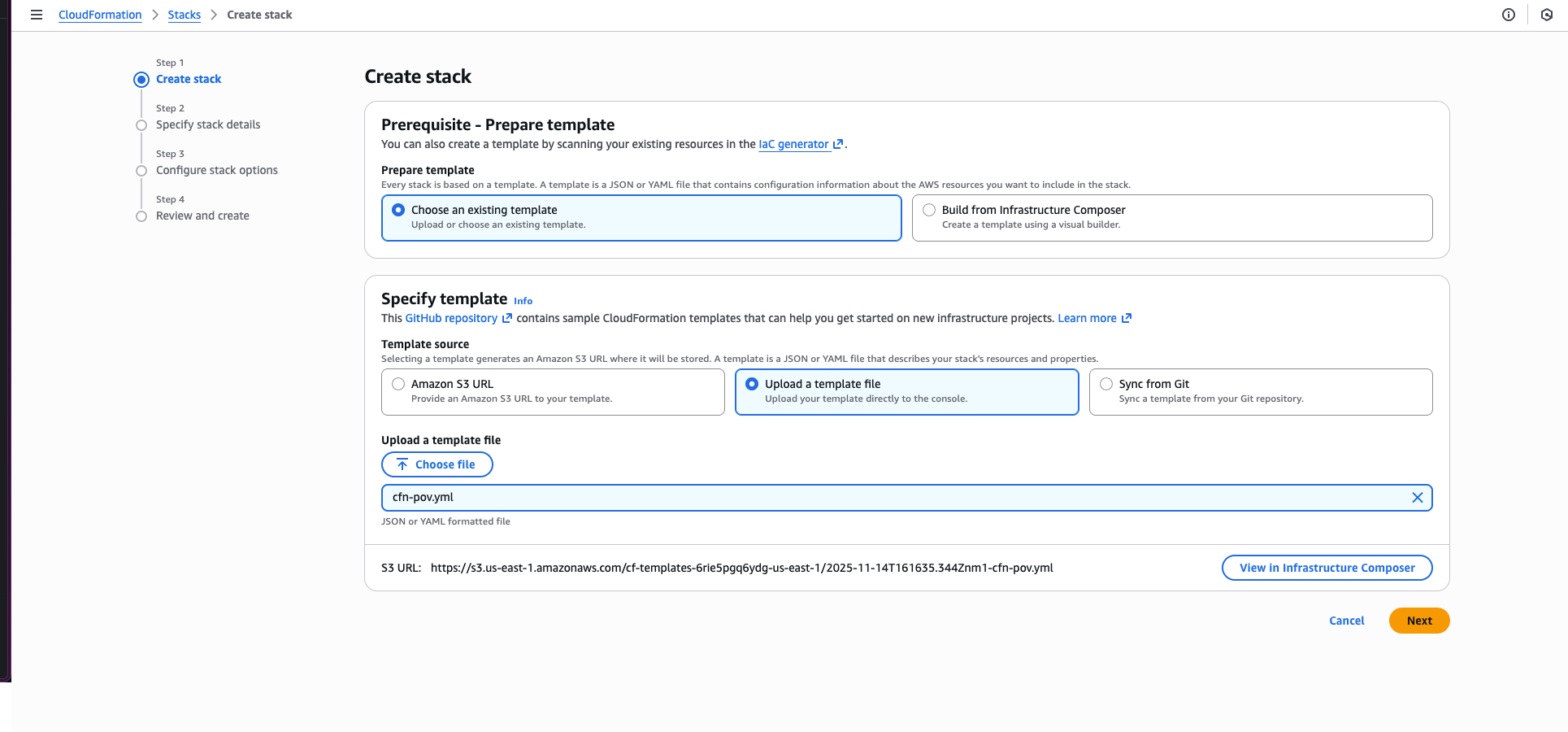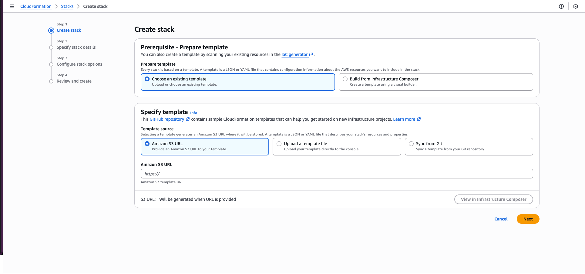 - Access the CloudFormation template. The CloudFormation template is currently available as a YAML file.