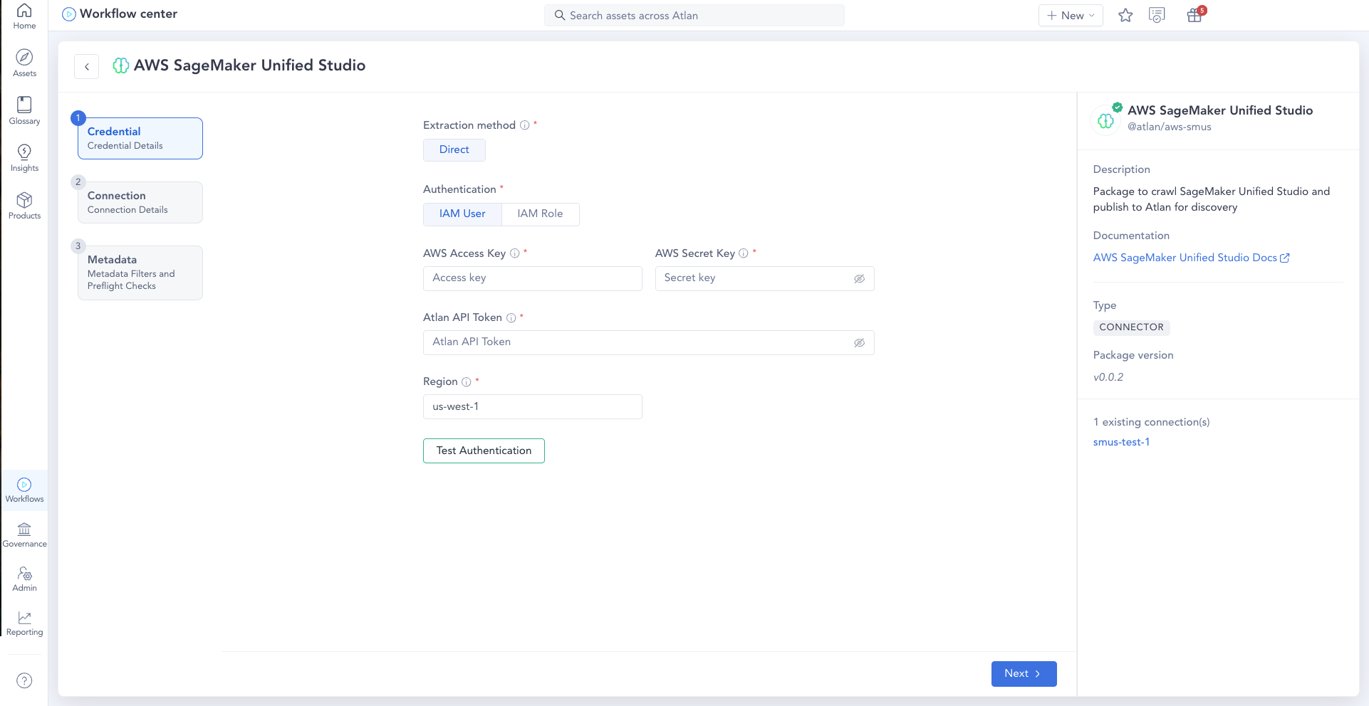 Sequential workflow for the SageMaker Unified Studio Atlan integration