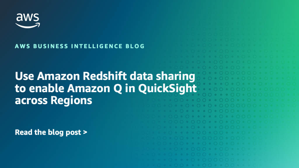 In this post, we discuss how to find data insights effectively using Amazon QuickSight and Amazon Redshift data sharing across different AWS Regions. This solution enables organizations to use generative BI capabilities through Amazon Q in QuickSight even when their data resides in a Region where these features are not yet available.