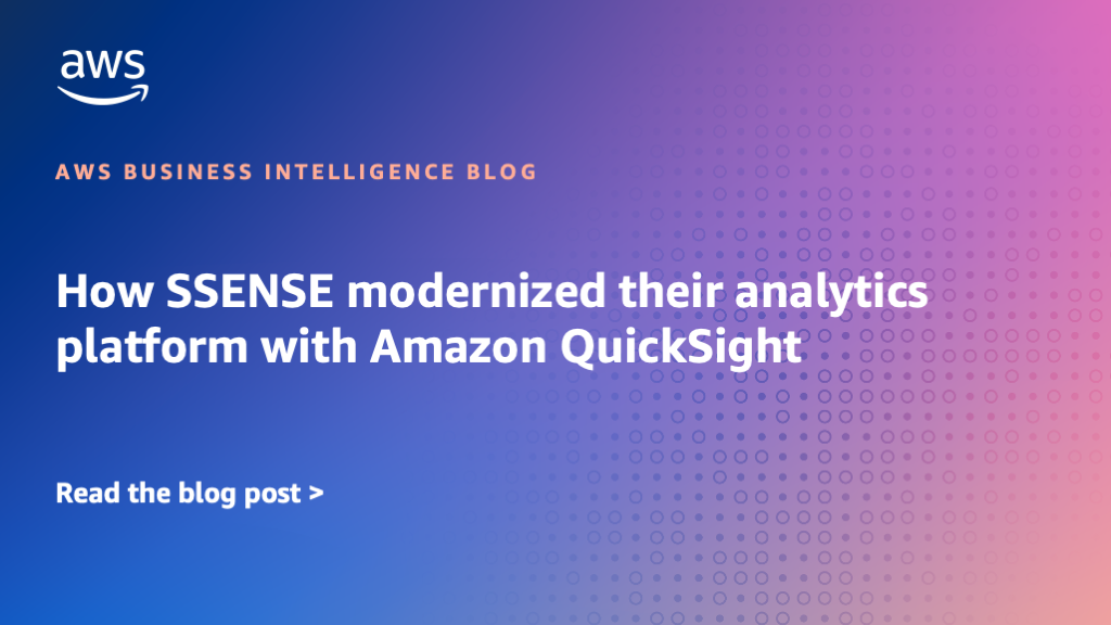 In this post, we explore how SSENSE successfully migrated from a legacy business intelligence platform to Amazon QuickSight, enabling self-service analytics across the organization while reducing costs and improving operational efficiency. The migration involved transitioning almost 600 dashboards within 8 months, resulting in substantial benefits including a 25% decrease in dashboard development time, 80% reduction in maintenance tasks, and overall analytics expenses reduced to approximately one-third of previous levels.