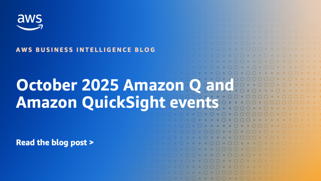 Amazon QuickSight powers data-driven organizations with unified business intelligence (BI) at hyperscale. With Amazon Q in QuickSight, business analysts and business users can use natural language to build, discover, and share meaningful insights in seconds, turning insights into impact faster. Join us for online and in-person events in October 2025.