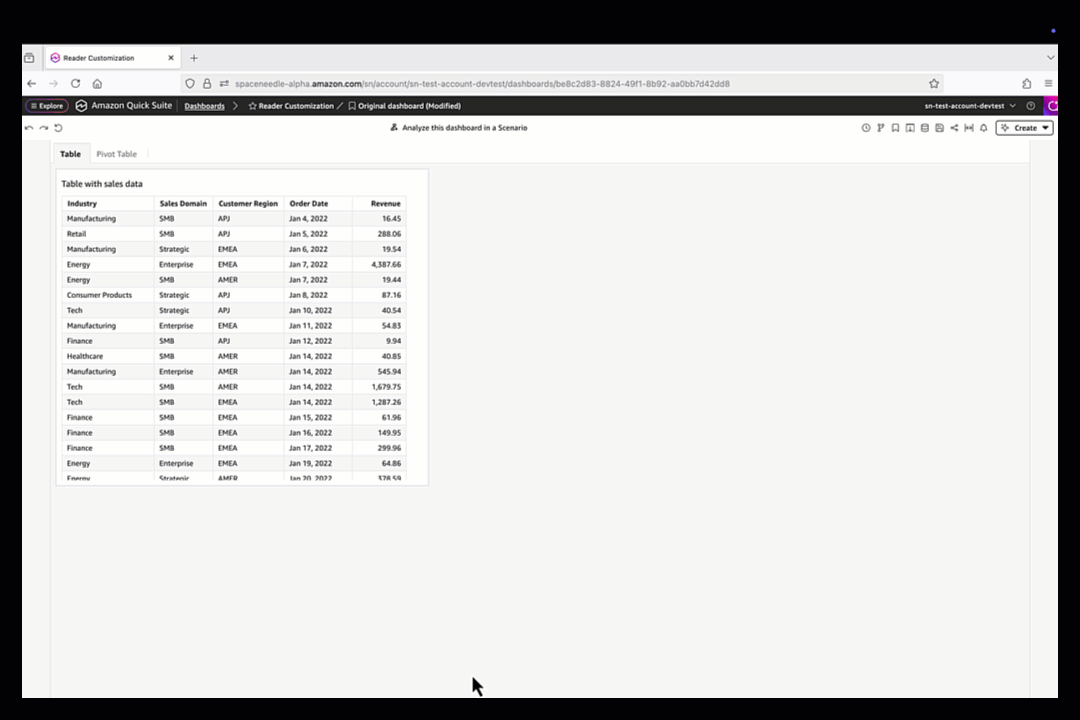 We are excited to announce the general availability of expanding dashboard customizations of tables and pivot tables in Amazon Quick Sight, the AI-powered business intelligence (BI) service. With this enhancement, readers can add or remove fields, change aggregations, and modify formatting directly in dashboards without requiring updates from authors. This enhancement boosts self-service analytics, reducing reliance on authors, and helps readers tailor insights to their role.