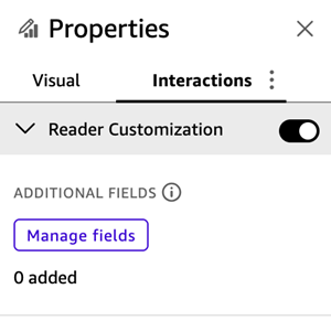 - In the Properties pane, on the Interactions tab, turn on Reader Customization. (By default, this option is enabled. If the author doesn’t want readers to customize the visual, they can turn it off.)