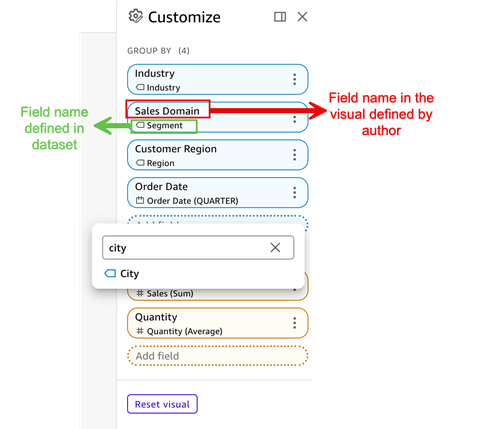 - With Reader Customization enabled, manage which fields you want readers to be able to add or remove. The available fields are based on the dataset that the visual is sourced from. By default, if the author doesn’t enable any additional fields, readers can remove, add back, hide, show, reorder, and change aggregations for the existing fields in the visual.