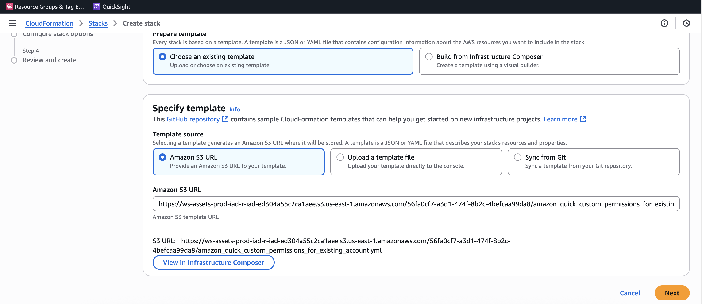This section provides a CloudFormation template to deploy for existing Quick Suite account subscriptions.