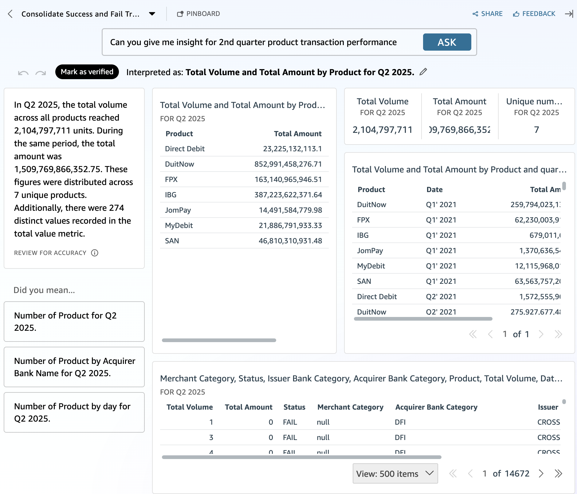 In this post, we explore how PayNet transformed its business intelligence (BI) capabilities using Amazon QuickSight to enable near real-time payment analytics, improve operational visibility, and enhance data quality monitoring across our diverse payment services.