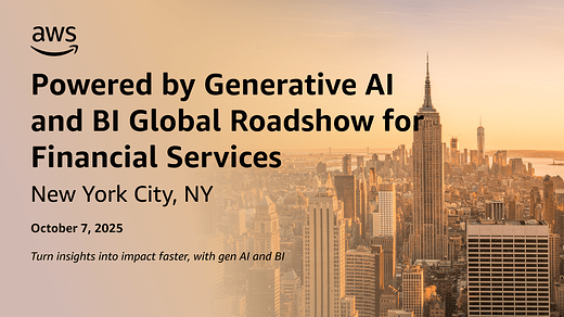 Powered by GenAI & BI Roadshow for Financial Services | New York City, New York | October 7 Transform your market position with strategic AI and BI adoption at this executive and technical forum hosted by AWS and Impetus in New York City. Learn how leading financial services organizations like Verisk Analytics and Capital One are using generative AI and BI to reshape their data strategies. Industry leaders and AWS experts will share insights and demonstrate how the latest AI services—including Amazon SageMaker Studio, Amazon Q, and Amazon QuickSight—are driving productivity and enabling smarter, data-driven decision-making. |