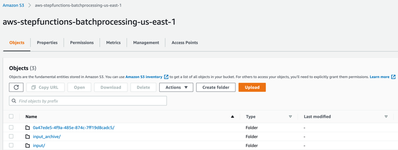- In the S3 console for the SourceBucket, choose Create folder. Name the folder input and choose Create folder.