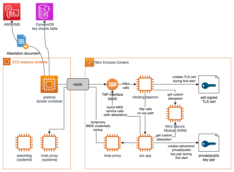 - watchdog: Systemd service that starts the enclave and makes sure it stays up and healthy.