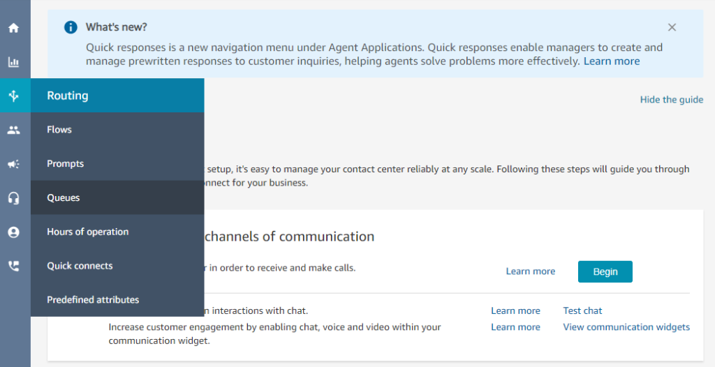 - New to Amazon Connect? You can navigate to our Getting started with Amazon Connect User Guide.
