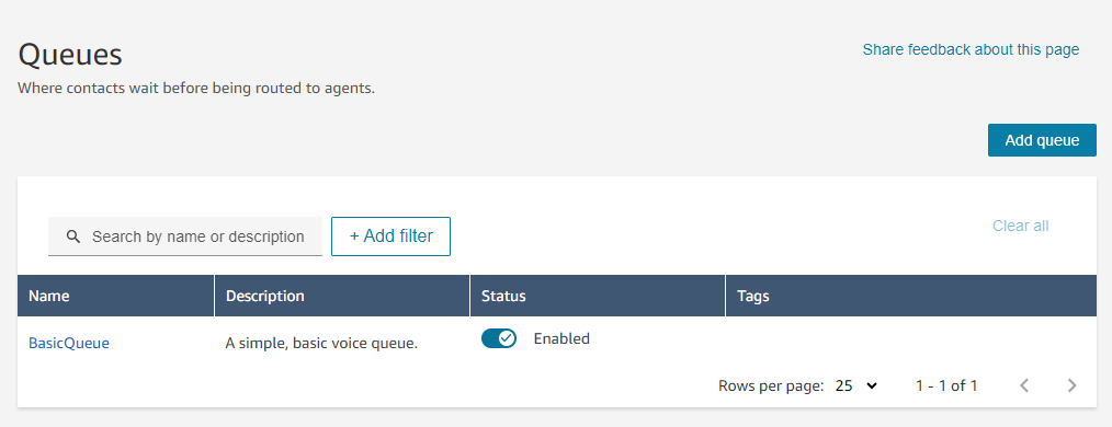 a. Navigate to the Amazon Connect Console as an administrator, or user with appropriate security profile configuration for viewing queues and contact flows.