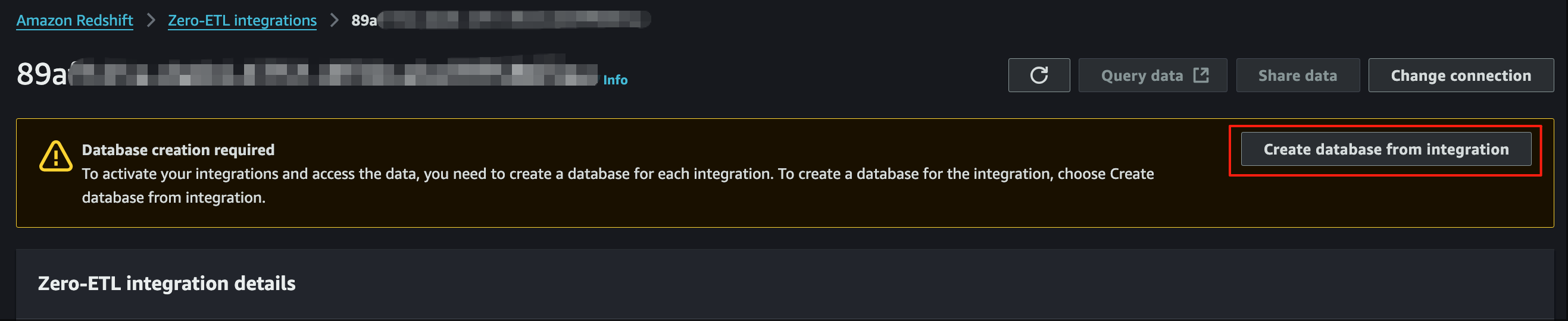 - Choose ‘Create a database from integration’. NOTE: It takes 2-4 mins for the database to be available